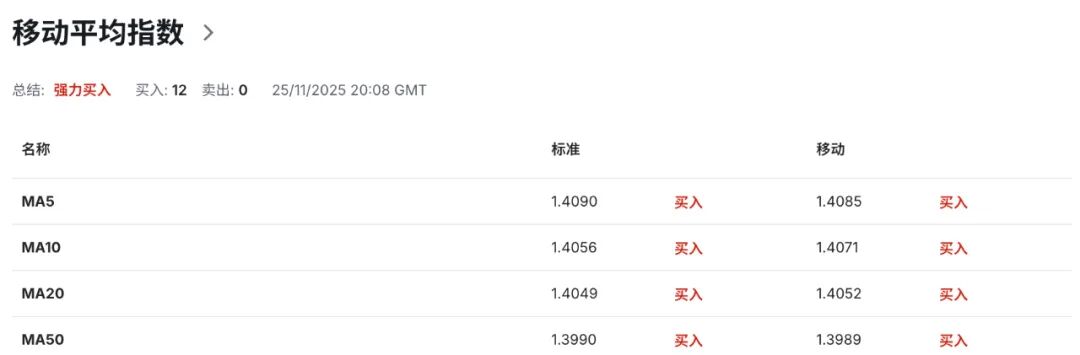此外需要细心的是,1.4170区域水平为2025年2月以来着落趋势中斐波纳奇50%回撤位,工夫上组成潜在强阻力。价钱接近或波及该区域时,需警惕空头埋伏可能引发的快速回落,或因超买状态累积而出现的工夫性回调风险。