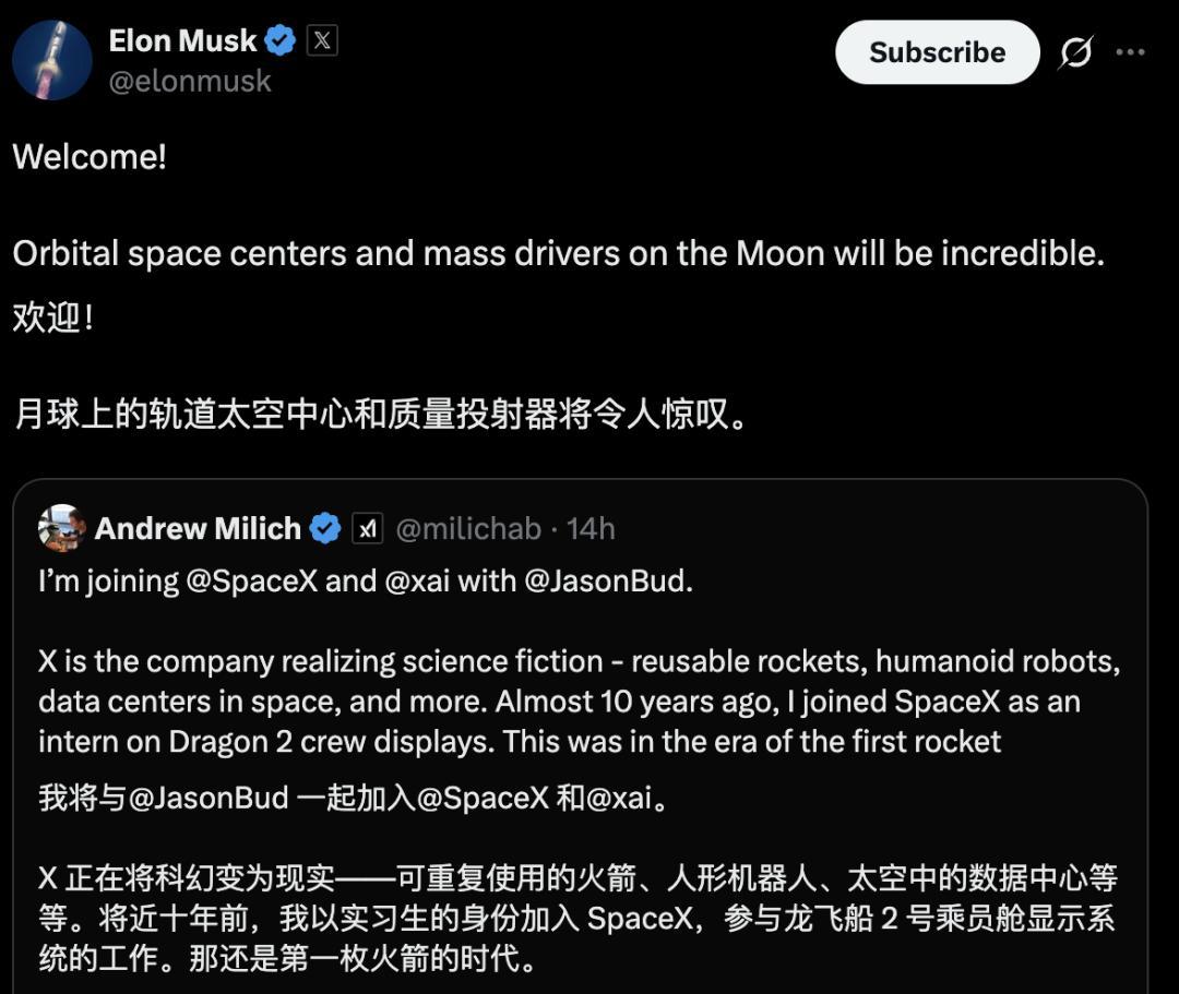 就在张国栋晓谕下野的归并天,马斯克晓谕前Cursor的两位中枢高管入职。