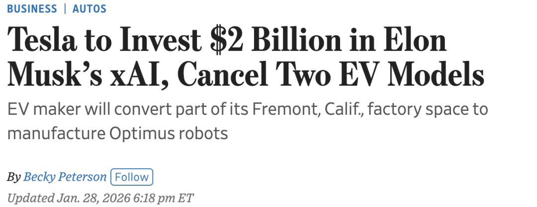 2026年1月28日,特斯拉发布四季度财报,败露已向xAI的E轮融资参加20亿好意思元,除外部报说念的约2300亿好意思元的估值购得优先股。